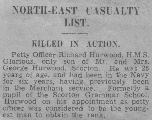 Dedicated to perpetuate the proud memory of the men serving in HM Ships Glorious, Ardent & Acasta who lost their lives in the Norwegian Sea on 8th June 1940 and those who survived
